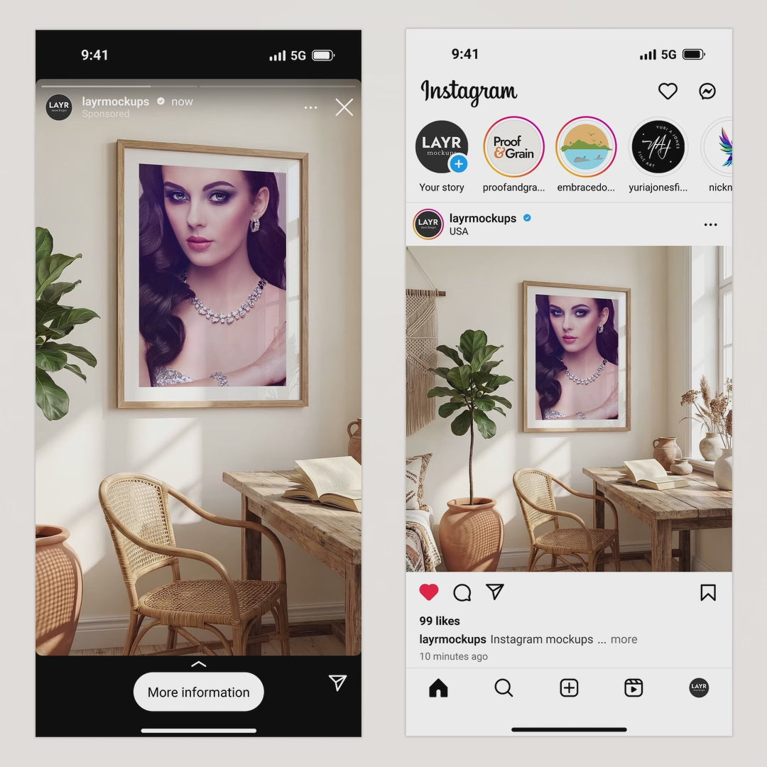 Every mockup includes a white mat/border that can be toggled on and off, so multiple ratios fit well, including 3:4, 2:3, and DIN A sizes.